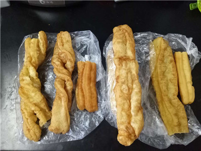 檢測結果:六個樣品均符合國家標準。但是來自路邊小攤的1、2號樣品比其他樣品均高且快要接近國家標準。北京智云達提醒廣大消費者應到正規早餐店購買油條,切勿貪圖便宜到路邊攤購買油條。