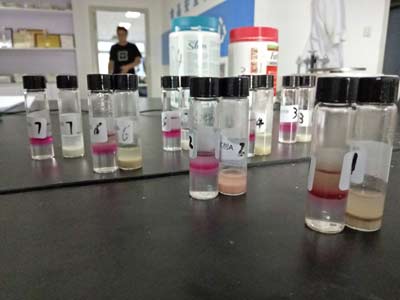 北京智云達技術工程師楊老師和王老師將準備好的樣品分別進行標號,通過北京智云達自主研發生產的快速檢測產品:酚酞快速檢測試劑盒、西布曲明快篩試劑盒,對代餐粉、奶昔等樣品中的酚酞、西布曲明含量進行快速檢測試驗。