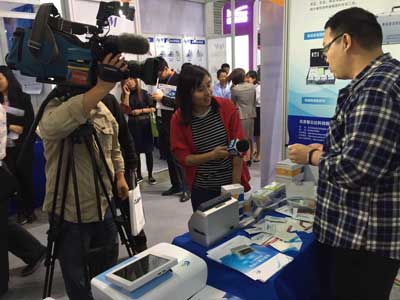展位前擁擠不斷的人群更是吸引了東方衛視的記者朋友的眼球,來到北京智云達展位前,對快檢試劑盒操作及常見食品檢測等問題進行現場采訪。