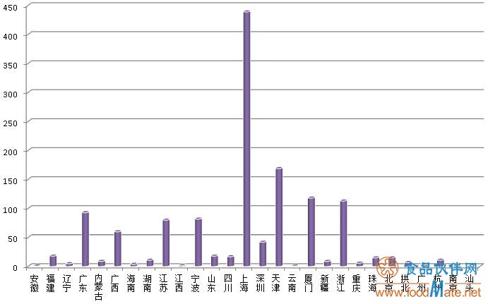 統(tǒng)計(jì)顯示,這些食品來自六十多個(gè)國家或地區(qū)。其中,意大利、美國、日本這些國家以及臺(tái)灣地區(qū)的不合格食品居多,尤以臺(tái)灣地區(qū)的最多。