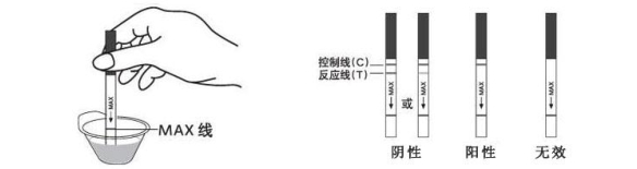 3. 將試紙插入待檢測樣品中,樣品界面勿超過試紙上的“Max”線。