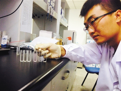 隨后實(shí)驗(yàn)人員檢測(cè)泡椒鳳爪是否加入了超標(biāo)的防腐劑山梨酸。稱取5克樣品,加蒸餾水,搗成勻漿過濾,吸取2ml溶液到比色管中,加山梨酸試劑,沸水加熱后冷卻,再倒入比色皿中。此時(shí)6種樣品液的顏色有了不同,5種樣品顏色沒變,1種樣品液的顏色呈現(xiàn)出淺粉色。