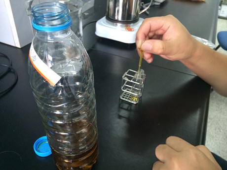 1、樣品管:用0.2ml小塑料吸管取9滴油(凝固的油樣水浴加熱融化后混勻)于10ml比色管中