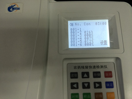 實(shí)驗(yàn)結(jié)果:抑制率分別為26%、0%、7%、12%、和0%,農(nóng)殘未超標(biāo)。判定依據(jù),抑制率≥50%時,農(nóng)殘超標(biāo)。