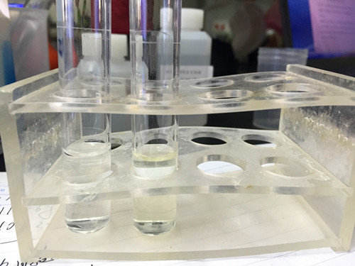 在檢測管中剛加入試劑C的時候,溶液立馬變為黃色,但是靜置一段時間后黃色消失。
