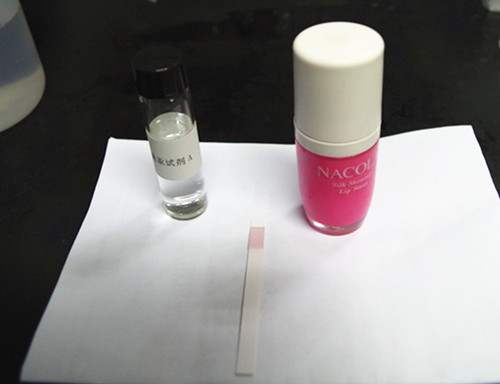由于唇彩有顏色,因此加入稍許活性炭于檢測液中,攪拌均勻,過濾,靜置。取上清液進行檢測。
